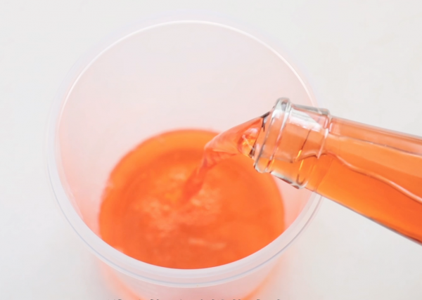 往密封盒里倒一半红醋,防止溢出来,倒入一勺蜂蜜、2勺食盐减半均匀。
