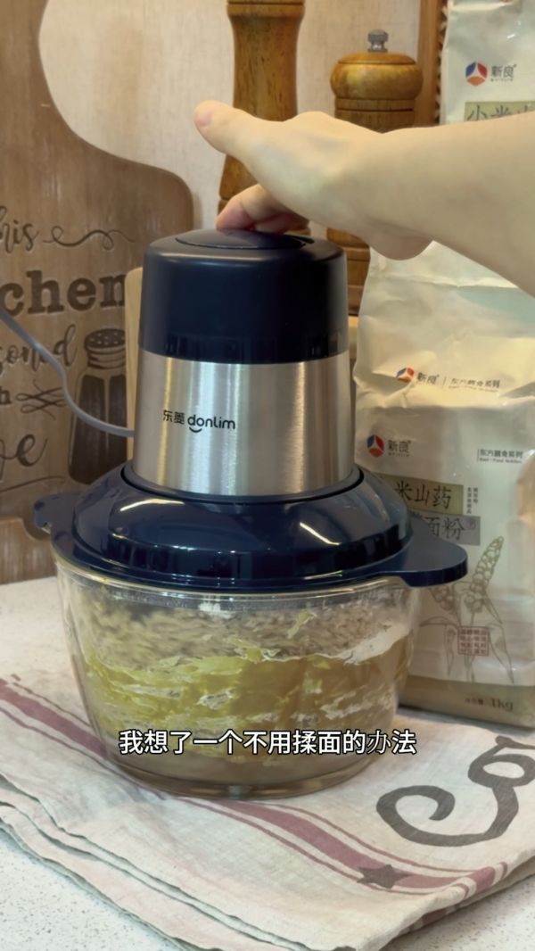 面粉放入绞肉机或和面机,倒入红糖酵母水,搅到没干粉就取出。上手揉成光滑面团,盖保鲜膜发酵50分钟。