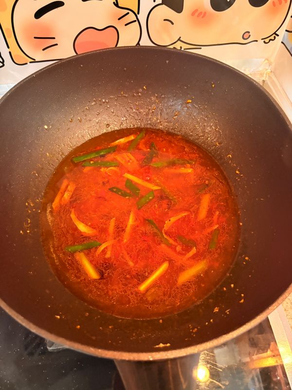 锅里放入小米辣、蒜末、葱段和麻辣香锅料炒香、(不吃辣可以放豆瓣酱)、再放入一勺生抽