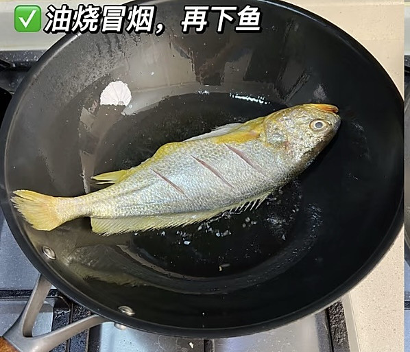 油热下鱼煎至金黄色(每面煎3分钟)煎透再翻面、捞出备用
