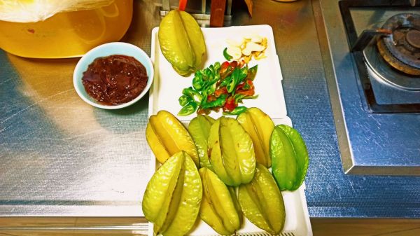 同时加入杨桃 翻炒几下