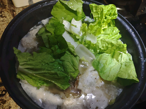 煎至双面金黄的时候,迅速倒入热水,汤水会立即变白,产生美拉德反应,这样一个简易版的鸡汤就有了。