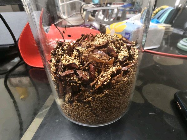 炒到把小米盛起来时,很明显轻的感觉时,就炒好了。