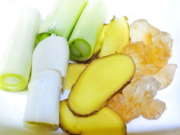 将五花肉冷水下锅,加入一部分的葱姜焯水,水开后打去血沫