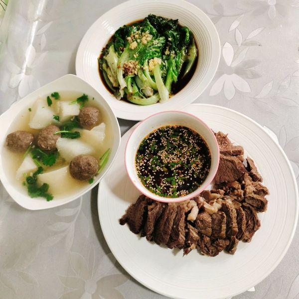 一锅出三个菜:凉拌牛肉➕白灼生菜➕萝卜牛丸汤!懒人的福音!