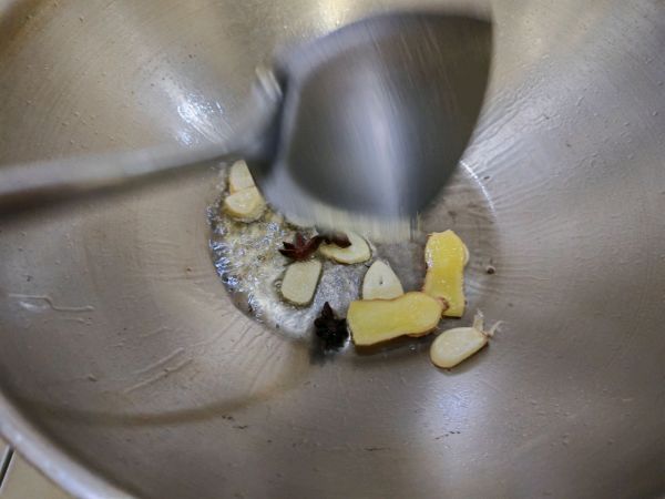 热锅倒适量食用油,将八角,姜蒜炒出香味
