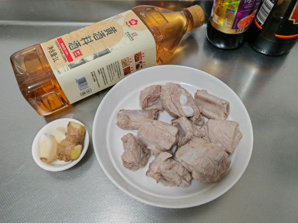 食材简单:仔排,葱姜蒜,八角。调味料:料酒,生抽,老抽,冰糖。