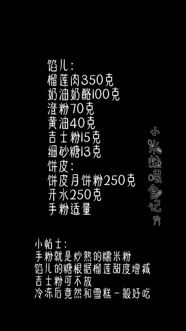 手粉就是炒熟的糯米粉 馅儿的糖根据榴莲的甜度来增减 吉士粉没有可不放