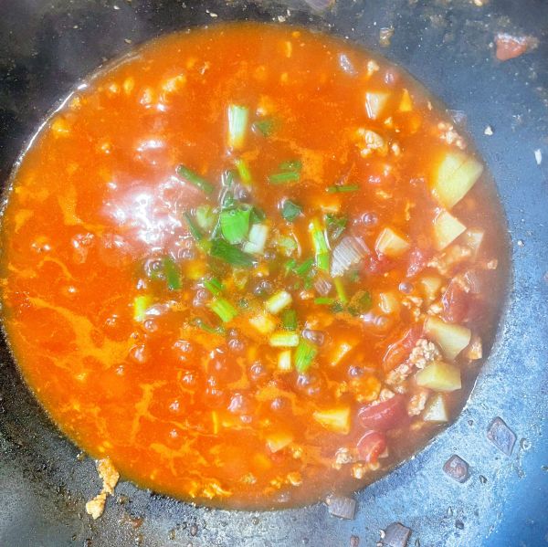 倒入淀粉水(玉米淀粉➕水搅拌均匀即可)慢慢收汁即可。