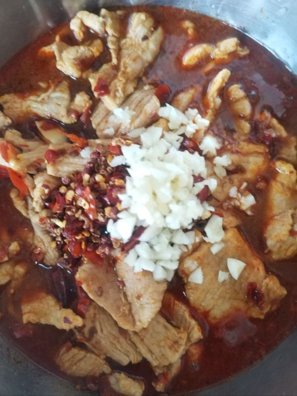 香辣过瘾的水煮肉片配一碗米饭,完美~~