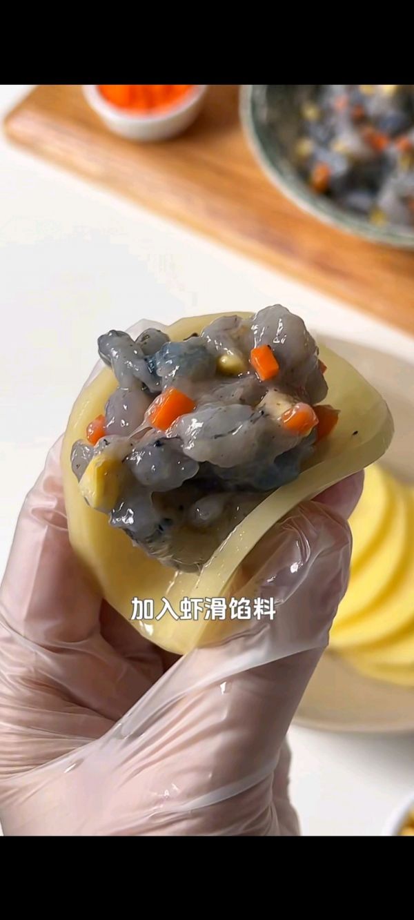 虾滑加入一勺料酒和适量海盐黑胡椒。
