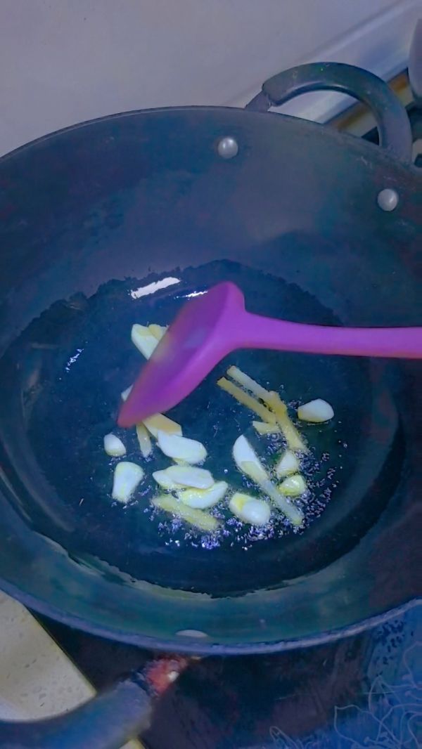 葱斜刀切段。姜蒜改刀。