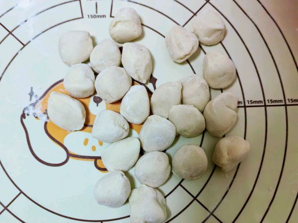 将面团所有食材混合揉成光滑面团醒发半小时,分成7克左右小面团