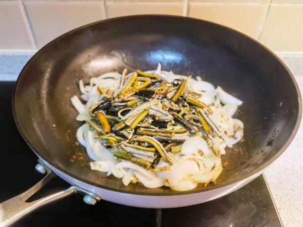 锅中放入洋葱丝炒出香味。