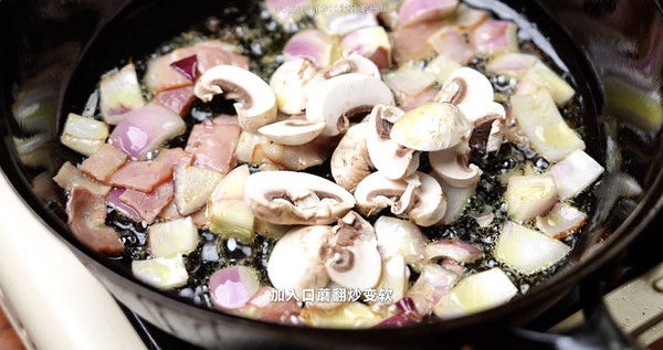 加一勺黑松露酱,倒入150ml牛奶和50ml的淡奶油