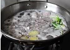 洗干净,放入锅内加入姜片和小葱飞水