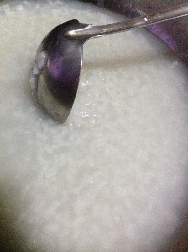 先把白米稀饭煮好,备用.