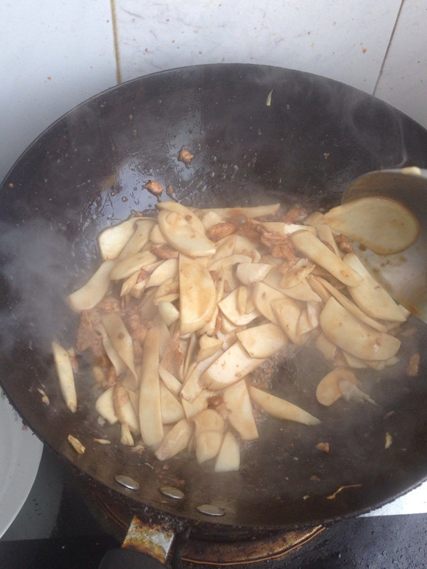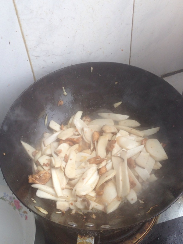 倒入杏鲍菇