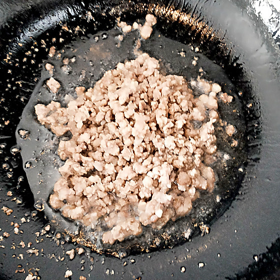 倒入肉馅划炒至变色烹入黄酒,倒入调好的酱料