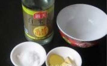 把米醋倒入小碗,放入姜,蒜,辣椒,白糖,搅拌一下。