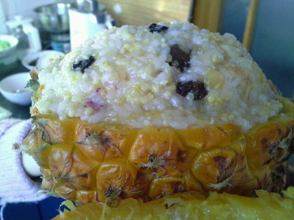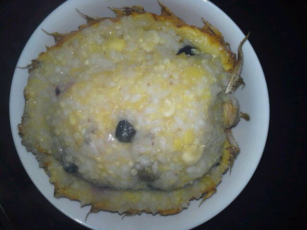 再加入刚才处理好的菠萝,杏仁蓝莓干,黑加仑干等,有花生仁加入应该也好吃