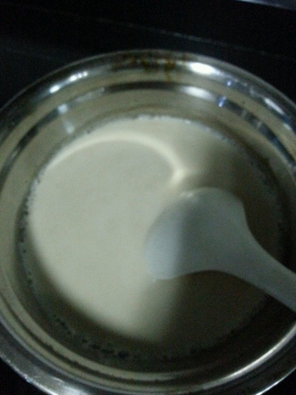 倒入纯牛奶,煮到锅边冒小泡,关火