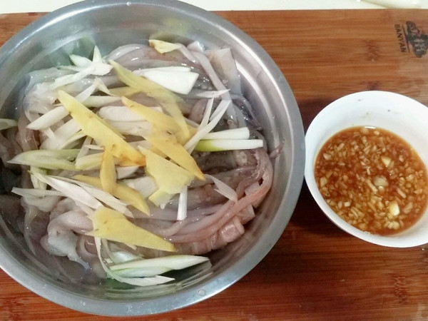 用盐、姜片、料酒腌制20分钟以上。