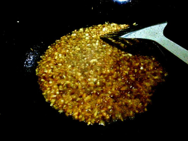 加入2勺蒸鱼豉油,适量糖翻炒,再加入剩下的蒜翻炒,再加适量水烧成汁,放入少量鸡精即可