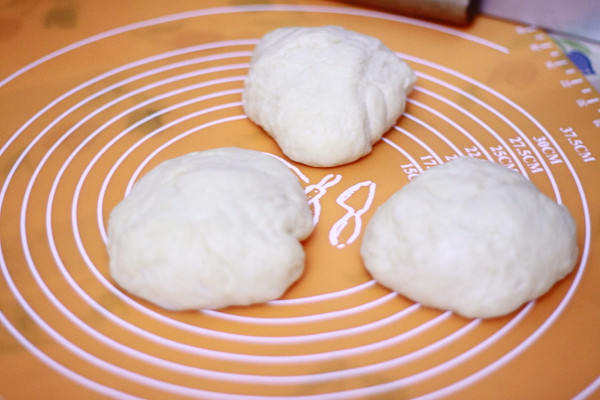 发酵完成后进行排气,排气完成后分割成3个面团进行中间发酵,约10分钟左右