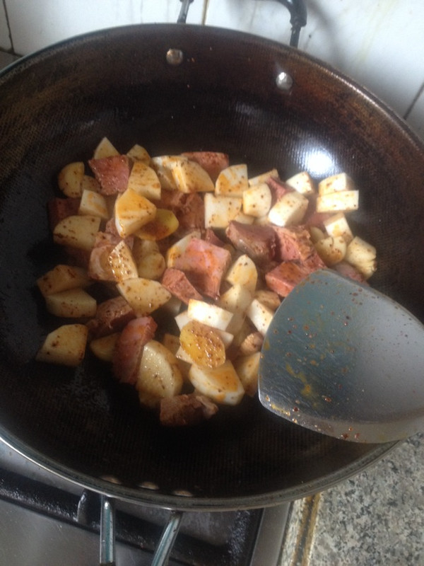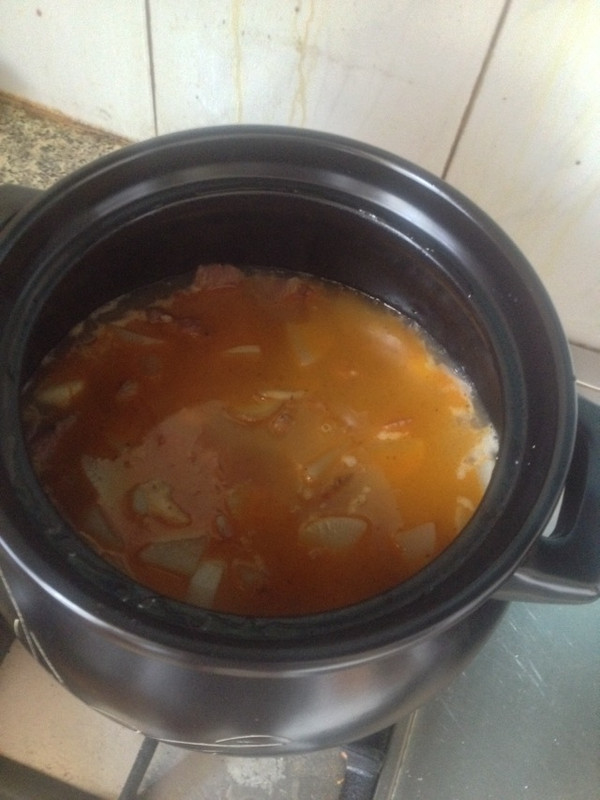油锅加热,先放入葱蒜翻炒,然后依次加入羊肉,萝卜翻炒
