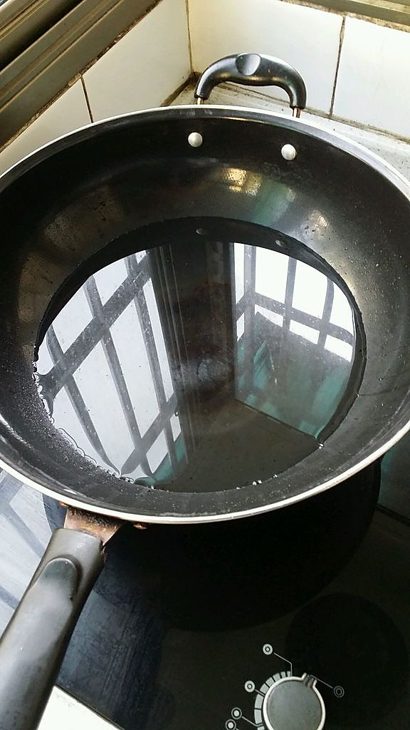用平常炒菜的锅放清水大火烧开!!放入蒸架不是直接放锅煮喔!